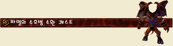 파멸의 수호병은 지옥불정령과 함께 흑마법사의 강력한 양대 소환수이다. 그 강력함에 끌려 흑마법사를 한 유저들이 많지만 지옥불정령과 마찬가지로 인스던전에서 랜덤하게 떨어지는 아이템으로 만 배울 수 있어 대다수의 유저들에겐 그림의 떡이였다. 하지만 이번 1.40패치로 지옥불정령과 마찬가지로 퀘스트를 진행하여 얻는 방법이 추가되었다. 이제부터 파멸의 수호병을 얻기 위한 퀘스트와 능력을 알아보도록 하자.