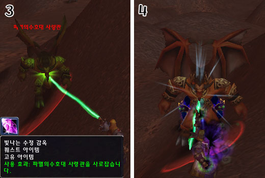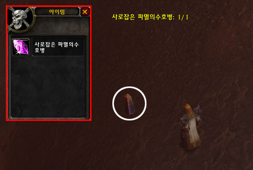그 외 몸으로 버티면서 시전을 해도 상관없지만 공격력의 워낙 강해 3번 이상의 공격을 버텨내기 힘들다. 그렇다고 시전 시간 동안 물약 및 생명석을 사용하면 시전이 캔슬되어 버리니 절대 금물이다! 성공을 하면 아래 그림처럼 수정에 갇히게 되며 수정을 클릭하면 사로잡은 파멸의수호병을 얻을 수 있다.