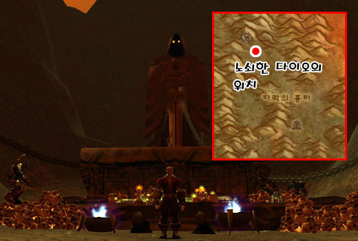 악마 소환 의식이 행해질 것 같은 제단의 앞에서 노쇠한 다이오를 만날 수 있다. 그와 대화를 나누면 아주 멀리서 왔군 인간친구 라며 이곳까지 오느라 고생한 유저를 반겨준다.