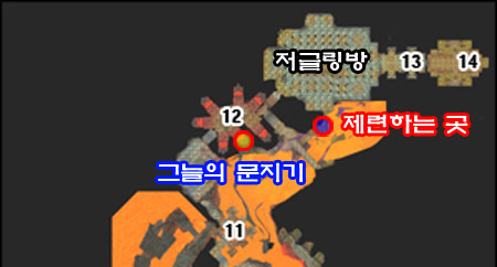 ▷ 검은무쇠 주괴: 검은무쇠 주괴를 만들기 위해서는 검은바위 나락에서 제련술을 배워야 한다. 제련술을 배우기 위해서는 검은바위 나락 7현자방이라 불리는 곳에 나오는 그늘의 문지기에게 퀘스트를 받아야 한다. 퀘스트를 완료하기 위해서는 금괴 20개, 진은 주괴 10개, 별루비 2개가 필요하다. 해당 물품을 그늘의 문지기에게 전해주고 대화를 나누면 제련술을 배울 수 있다. 제련술을 배웠다고 모든 가열로에서 검은무쇠 광석 제련이 가능한 것은 아니다. 아래 그림에서도 표시 했듯이 그늘의 문지기가 있는 7현자의 방과 저글링방(?) 사이에 있는 길목에서 아래쪽으로 내려가면 화산 심장부 공격대 인스로 통하는 길이 있다. 이 길을 건너기 전 왼쪽에 철망으로 된 길이 있으며 불의 정령을 처리하고 철망 끝에 가면 용암이 흘러나오는 곳이 제련 가능한 곳이다. 이곳에서 검은무쇠 광석을 제련해 주괴로 만들 수 있다. 검은무쇠 주괴 1개를 만들기 위해서는 검은무쇠 광석 8개가 필요하다.