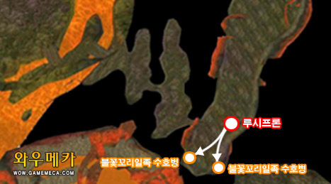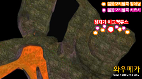 팁 : 화산심장부의 네임드 몬스터인 "가르"를 처치하면 굽이치는 용암정령은 더 이상 나타나지 않는다.