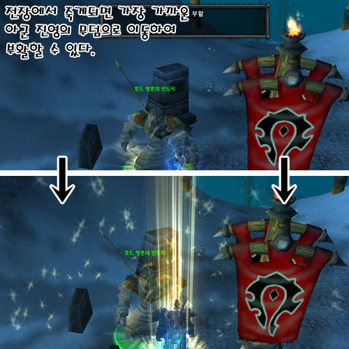 적과의 싸움으로 죽게 되면, 아군의 가장 가까운 무덤으로 이동하여 되살아나게 된다. 무덤으로 가면 영혼의 인도자가 부활을 시켜주는데, 체력과 마나를 풀로 채워준다. 30초 간격으로 살려주기 때문에 병력을 지속적으로 투입할 수 있다.