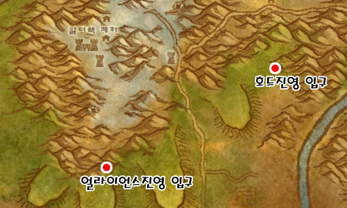 알터랙 전장은 말 그대로 알터랙 산맥에서 찾을 수 있다. 알터랙 전장 호드진영의 입구는 소페라 절벽 동쪽에 위치해 있고, 얼라이언스진영의 입구는 마루터기에 위치해 있다. 각 진영의 입구에는 스톰파이크 경비대와 서리늑대부족이 삼엄한 경비를 서고 있다.