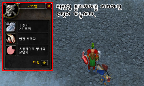 ▶적 시체를 루팅하여 퀘스트 아이템을 얻자 |