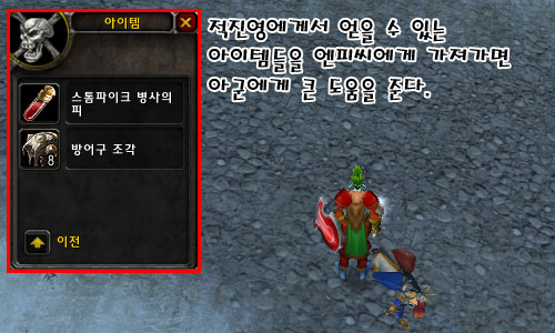 ▶지속적으로 방어구 조각을 가져오라고 한다 |