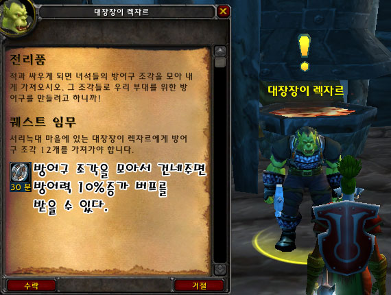 덤으로 방어력 10%증가 버프를 걸어주니 1석2조이다. 지속적으로 퀘스트를 주니