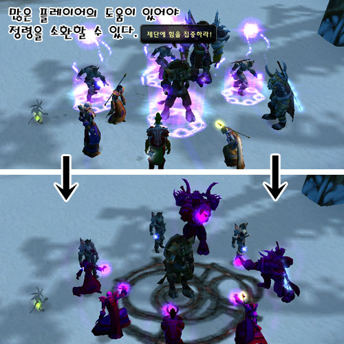 소환이다. 각 진영 NPC가 원하는 재료를 지속적으로 모아서 건네주면 투쟁의 벌판으로