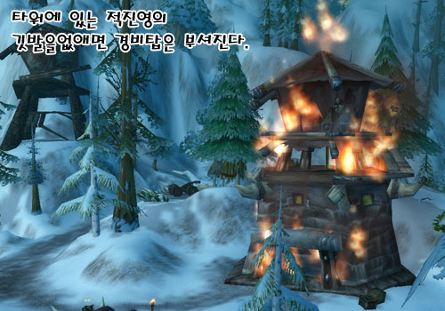 위에 있는 깃발을 없애면 강력한 방어선인 경비탑을 파괴할 수 있다. 파괴된 경비탑은