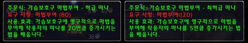한정판매 도안: 가슴보호구 마법부여 - 최하급 마나(2실버40코퍼), 가슴보호구 마법부여 - 하급 마나(3실버