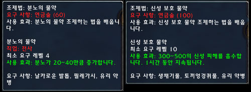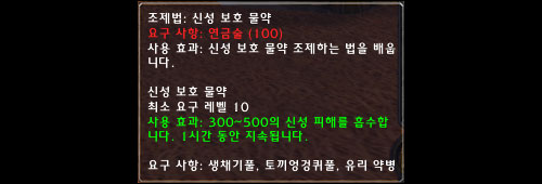 한정판매 도안: 분노의 물약(1실버), 신성 보호 물약(8실버)