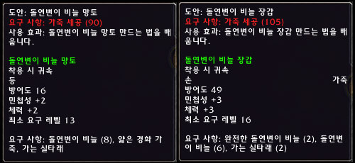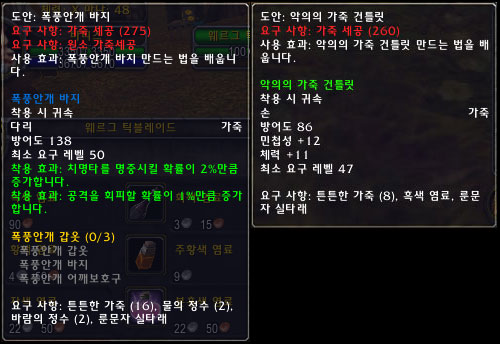 한정판매 도안: 악의의 가죽 건틀렛(1골드20실버),폭풍안개 바지(1골드44실버)