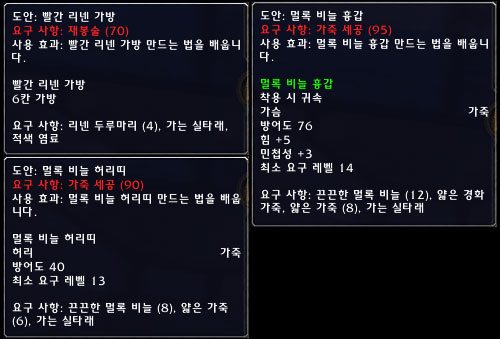 한정판매 도안: 빨간 리넨 가방(2실버), 멀록 비늘 허리띠(5실버50코퍼), 멀록