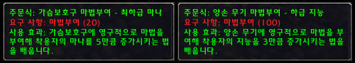 한정판매 도안: 가슴보호구 마법부여 - 최하급 마나(3실버), 양손 무기 마법부여
