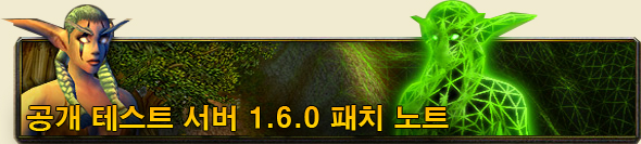 1.6.0 패치에 대한 내용이 공식사이트에 공개 되었다. 아쉽게도 이번 패치노트를 통해 소개된 `검은날개 둥지`와 `다크문 축제`는 공개 테스트 서버에서 선보이지 않을 예정이다. 블리자드 개발팀에서는 위 두 컨텐츠의 모든 개발이 완료 되었으나 보다 체계적인 재미를 선사하기 위해 정식 서버에서 이를 공개한다고 발표했다. 그외 눈에띄는 패치 사항들을 살펴보면 직업별 특성변경, 사용자 인터페이스 변화 그리고 지역별 수정 등을 볼 수 있다. 테스트서버를 통해 수집된 정보는 공식 서버 패치때 수정 적용될 예정이다. [관련기사]