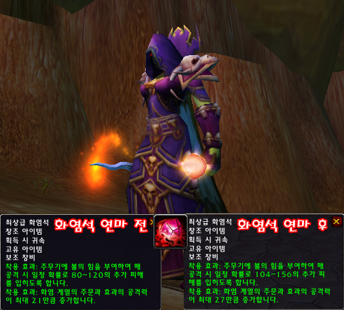 세번째로 창조의 대가 특성이 사라진 것과 화염석 특성의 변화다. 창조의 대가는 생명석, 영혼석과 주문석 그리고 화염석 창조에 들어가는 마나 소모와 시전 시간을 줄여주는 효과가 있는 특성이었는데, 완전히 사라져 버렸다. 또한 창조의 대가 바로 아래에 있는 화염석 연마의 변화다.