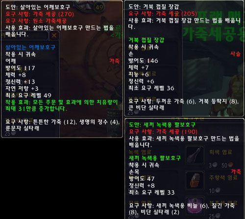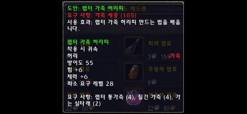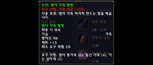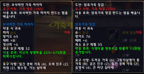 한정판매 도안: 보석박힌 가죽 허리띠(30실버), 암흑가죽 장갑(35실버)