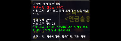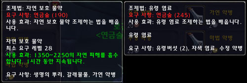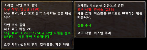 한정판매 도안: 자연 보호 물약(20실버), 미스릴을 진은으로 변환(80실버)