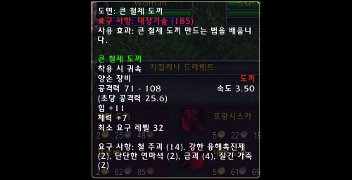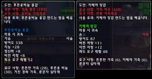 한정판매 도안: 푸른용비늘 흉갑(2골드), 키메라 장갑(1골드 20실버)