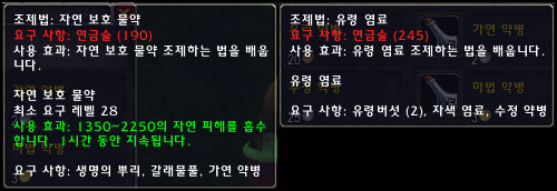 한정판매 도안: 자연 보호 물약(20실버), 유령 염료(90실버)
