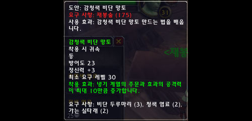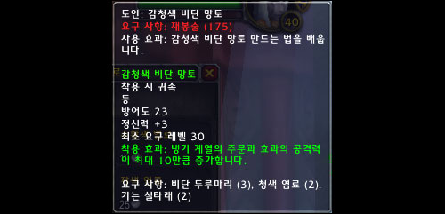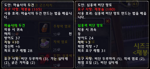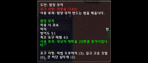 한정판매 도안: 마술사의 두건(10실버), 심홍색 비단 망토(12실버)
