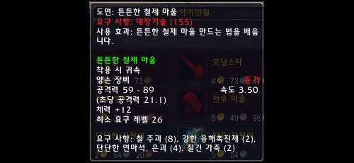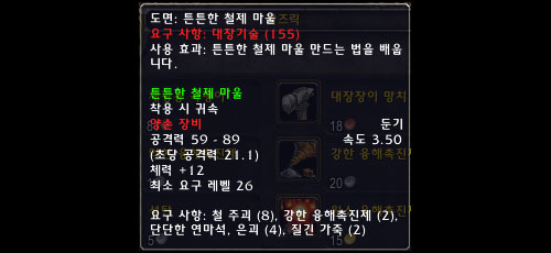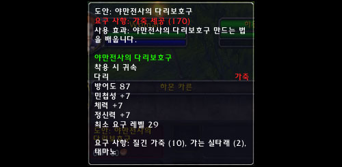 한정판매 도안: 야만전사의 다리보호구(6실버 50코퍼), 손목보호구 마법부여 -