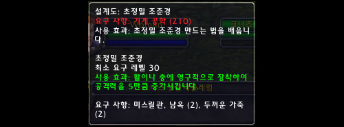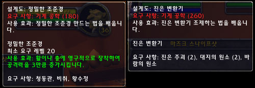 한정판매 도안: 정밀한 조준경(20실버), 진은 변환기(1골드 20실버)