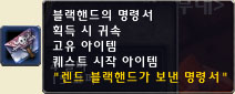 블랙핸드 명령서란 퀘스트를 하기 위해서는 지배의 보주를 지키고 있는 방패부대들을 처치해야 된다. 위치는 검은 바위 첨탑 던전 입구로 가는 통로의 반대편에 위치해 있으며 그곳에 지배의 보주를 지키고 있는 방패부대 병참장교란 오크를 처치하면 "블랙핸드의 명령서"를 드롭한다. 이 명령서는 파티원&공격대원 모두가 습득이 가능하기 때문에 퀘스트 시작에 어려움은 없다.
