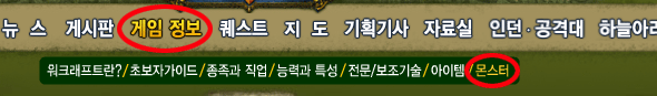 1. 게임정보 - 몬스터 페이지는 현재 업데이트 중