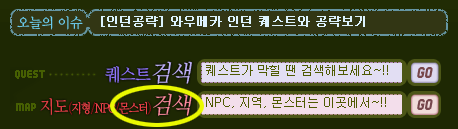 2. 메인화면 통합검색(지형/NPC/몬스터) 이용