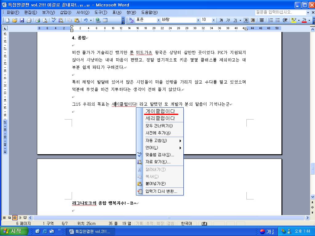 ▲기사 작성 중에 한 컷. MS 워드의 사전에는 이런 단어도 입력되어 있다!