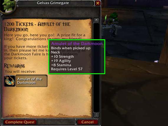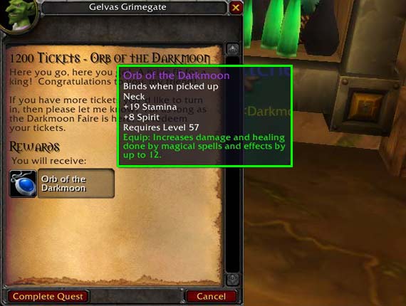 위에 소개한 카드들로 얻을 수 있는 장신구들 외에 다크문 축제에서 받는 퀘스트의 보상으로도 에픽급 아이템을 얻을 수 있다. 예브 네블기어가 주는 퀘스트들의 보상아이템은 상품권으로, 이것들을 모아 겔바스 그림게이트에게 전달하면 상품으로 교환해준다.