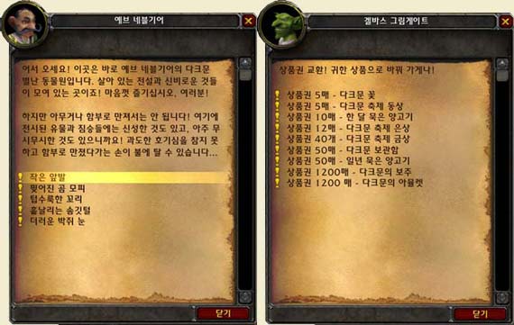 아직까지 확인되진 않았지만, 들리는 얘기로는 전문 기술(대장 기술, 가죽 세공, 기계 공학)로 만드는 아이템들로 상품권을 교환할 수 있다고 한다. 이러한 내용이 테스트 서버에서 확인 안된 것으로 보아 각 전문기술을 배운 플레이어에게만 퀘스트를 주거나, 퀘스트를 완료 한 후에 연계되는 퀘스트로 예상된다.