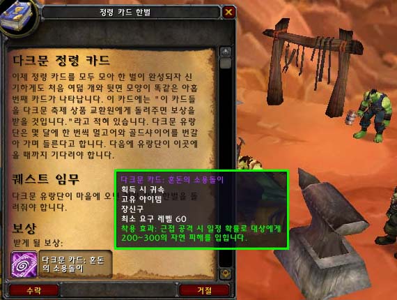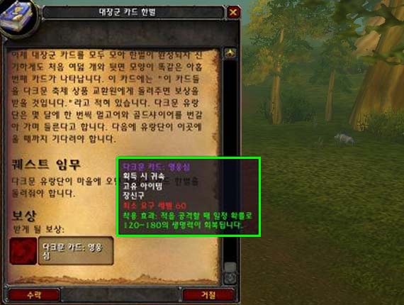 카드 한벌이 완성된다. 완성된 카드 한벌은 퀘스트 시작 아이템이며, 이 카드를 다크문