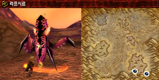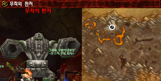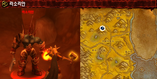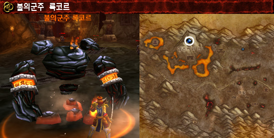 정보: 검은바위 나락 입구에 위치한 감금 구역을 순회하는 이 록코르는 생김새는 대지이면서 이름은 불의 군주인 아주 웃긴 놈이다. 이녀석만 드롭하는 특별한 아이템인 연기나는 산의 정수는 보조 기술로 마법부여를 배운사람만 사용 가능하다. 장신구이기 때문에 상당히 매력있는 아이템이기도 하다. 별다른 사용기술은 없지만 이녀석을 처치 하려면 주변에 있는 검은무쇠 드워프들을 먼저 제거해야 할 것이다.