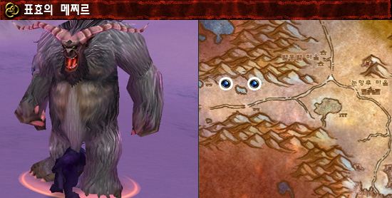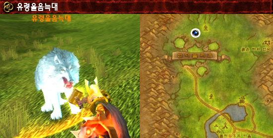 정보: 썬더블러프 복쪽 부근에 나타나는 늑대 무리 중 유일하게 흰색을 가지고 있는 늑대 네임드 몬스터이다. 이 녀석 역시 저레벨 사냥꾼의 인기 테이밍 몬스터일것 같지만, 분류가 악마이기 때문에 테이밍이 불가능하다. (답글 제보 감사드립니다.) 퀘스트 시작 아이템을 주기 때문에 다른 플레이어들에게도 표적이 되는 몬스터이다. 악마의 흔적이 남은 망토를 드롭하는데 획득시 귀속이며 고유 아이템이다. 퀘스트의 내용은 이 가죽을 썬더블로프로 가져다 주는 것이 목적이지만 얼라이언스인 필자는 해당종족이 아니라서 진행이 불가능 하였다.
