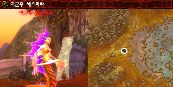 정보: 아즈샤라에 엘다라스 폐허에는 대부분 나가들이 점령하고 있다. 여군주 세스피라가 이곳을 관리하는 것 같으며 가끔 장군 펭페러도 여군주 세스피라의 휘하에 있는 것 같다. 사용하는 마법으로는 유령을 소환하며 이 유령으로 물리적인 대미지를 입힌다. 자주 보는 것은 아니지만 정말이지 상체는 볼만해도 하체는 징그럽다.