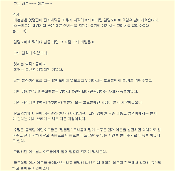 도도 : 호드 세계에서는 데본님을 돌진 후 레벨확인 이라고 부르던데 이 말도 어느정도 사연이 있으니까 나오는 말이겠죠?