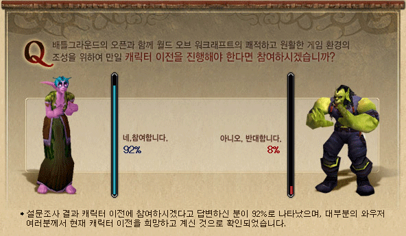 대부분의 와우저 여러분께서 현재 캐릭터 이전을 희망하고 계신다(?)