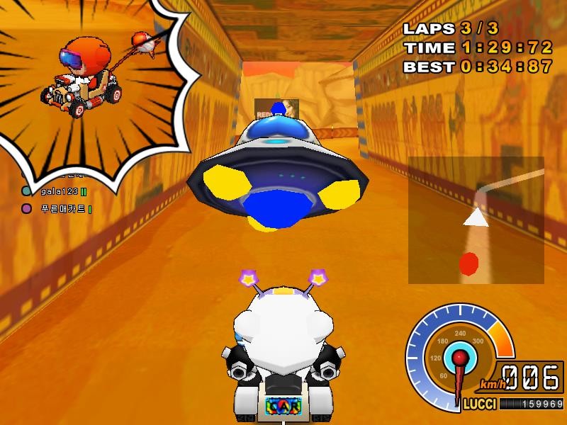 A양은 당황스러웠지만 일단 자신의 실력을 믿어보기로 하고 게임을 시작했다. 그러나 초반의 직선코너부터 벌어진 거리는 게임이 끝날 때까지 줄어들지 않았다. 결국 꼴찌를 해버린 A양은 복수를 다짐하며 캐쉬샵을 찾았다.