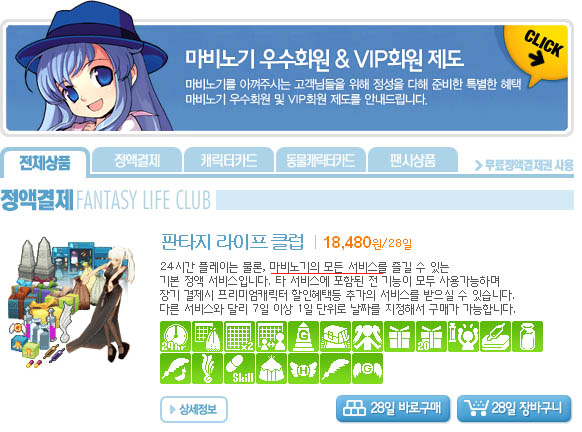 라이프 클럽 (28일간 마비노기의 모든(?) 서비스가 가능) - 18,480원
