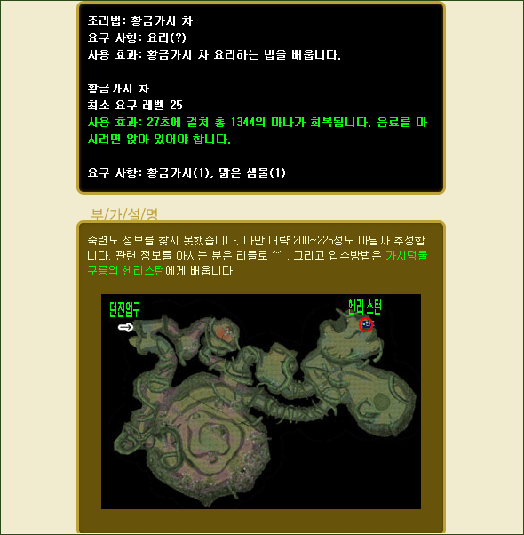 [ ? ] 상위 메뉴 제작아이템 페이지 에서는 대장기술을 비롯한 기계공학, 연금술, 마법부여, 가죽세공, 재봉술, 요리까지 총 7개의 제작 가능한 아이템들의 정보를 보여주게 됩니다. 제작에 필요한 내용과 입수경로 등 상세한 정보를 제공 합니다.