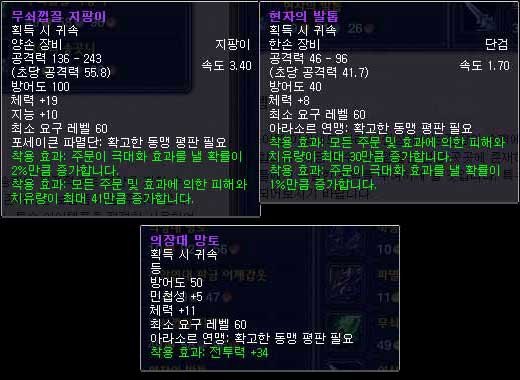 아라시 분지의 보상 아이템 |