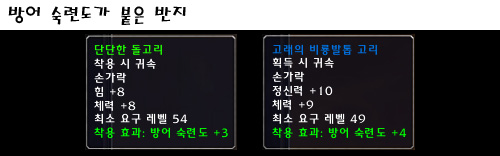 중 몇 안되면 명품이다. 기존 방어 숙련도 아이템이 대세였을 때에도 사용될 정도로 옵션이