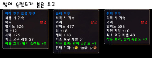체력 그리고 방어 숙련도까지 겸비한 만능 투구이다. 다만 제작 아이템이기에 골드가