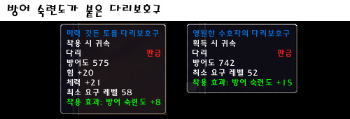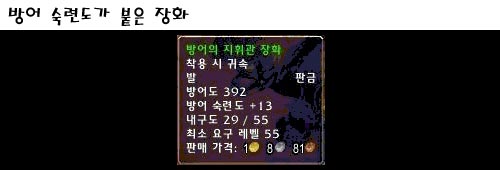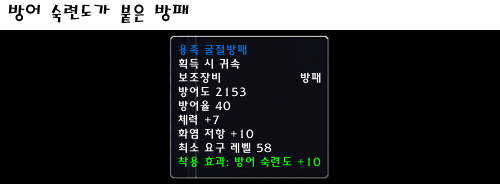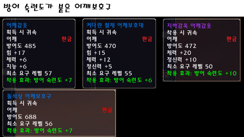숙련도 어깨보호구이다. 하지만 방어 숙련도와 높은 디펜외에는 특별한 점은 없다.