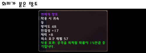 1.사각보루 망토 [혈투의 전장 북쪽방 공물 드랍]