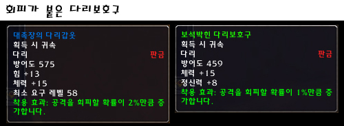 +5, 공격 회피 2%증가 옵션을 지닌 장화로 탱킹용으론 더러워진 철제장화보다 훨씬