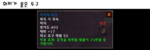 레이드 아이템과 제작 아이템을 제외한 가장 좋은 방어 숙련도 투구이다.