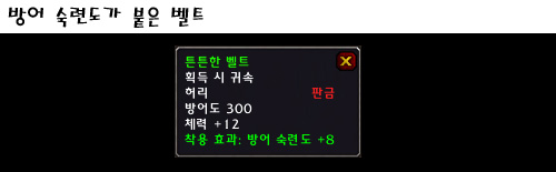 화산 심장부나 레이드 보스에게 얻는 벨트를 제외한 유일한 방어 숙련도 벨트이다. 고급