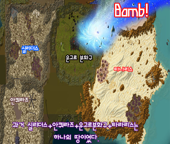 아주 먼 옛날 타나리스 사막 한 가운데에 큰 운석이 떨어졌다. 운석이 떨어진 장소는 현재 운고로 분화구가 되었고 서쪽으로 실리더스 동쪽으로 타나리스로 나뉘게 된다. 그리고 운고로 분화구는 떨어진 운석의 뜨거운 기운으로 인해 밀림으로 변해버렸다.
